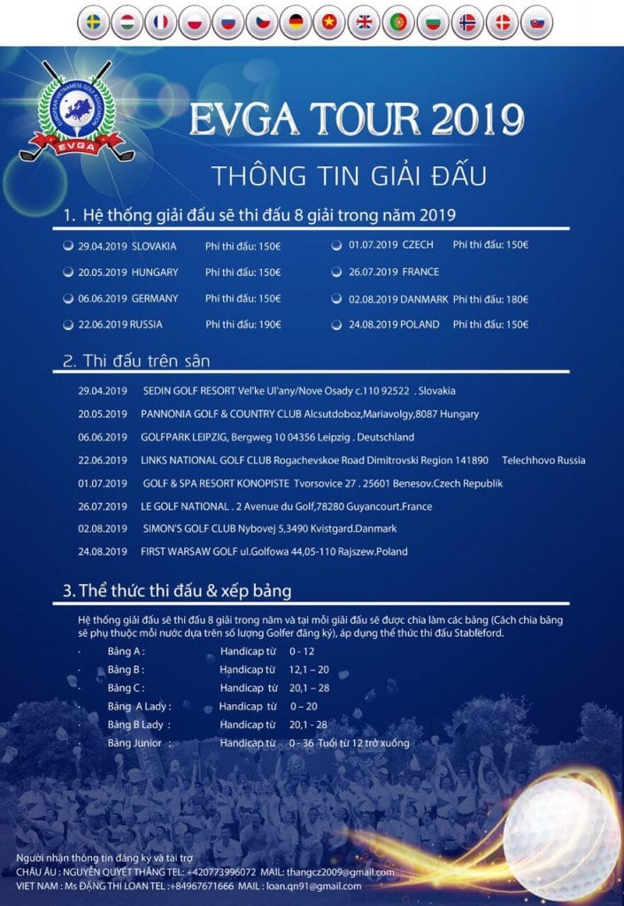 Tous les golfeurs souhaitent participer au EVGA Tour 2019 peuvent s’inscrire via FVG. La lettre d’invitation de chaque événement sera envoyée par le bureau du FVG avant chaque tournoi. Les dates sont :
