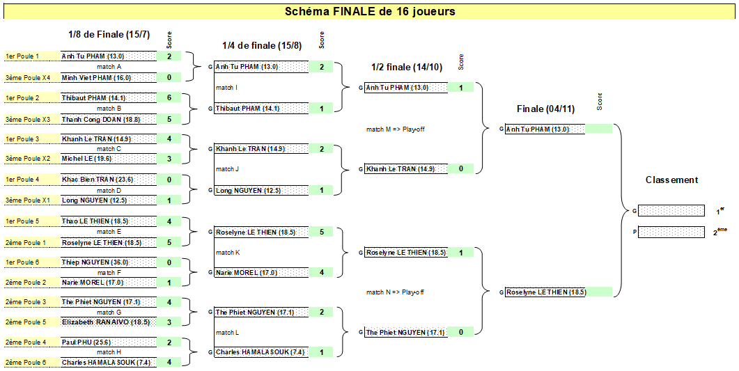 Félicitation à nos 2 joueurs qualifiés pour la finale, leurs nom sont dans l’image jointe et sur notre site internet.