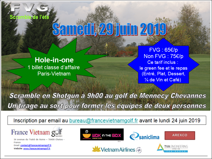 Inscription par email au bureau@francevietnamgolf.fr avant le lundi 24 juin 2019